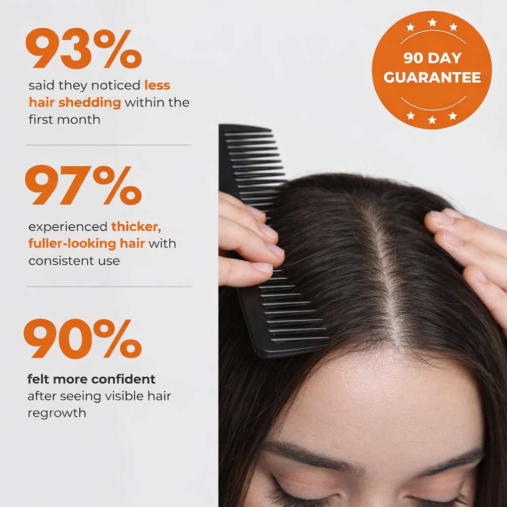 Most people notice reduced shedding within a few weeks. Visible improvements in thickness and fullness typically appear with consistent use over 2 to 3 months.